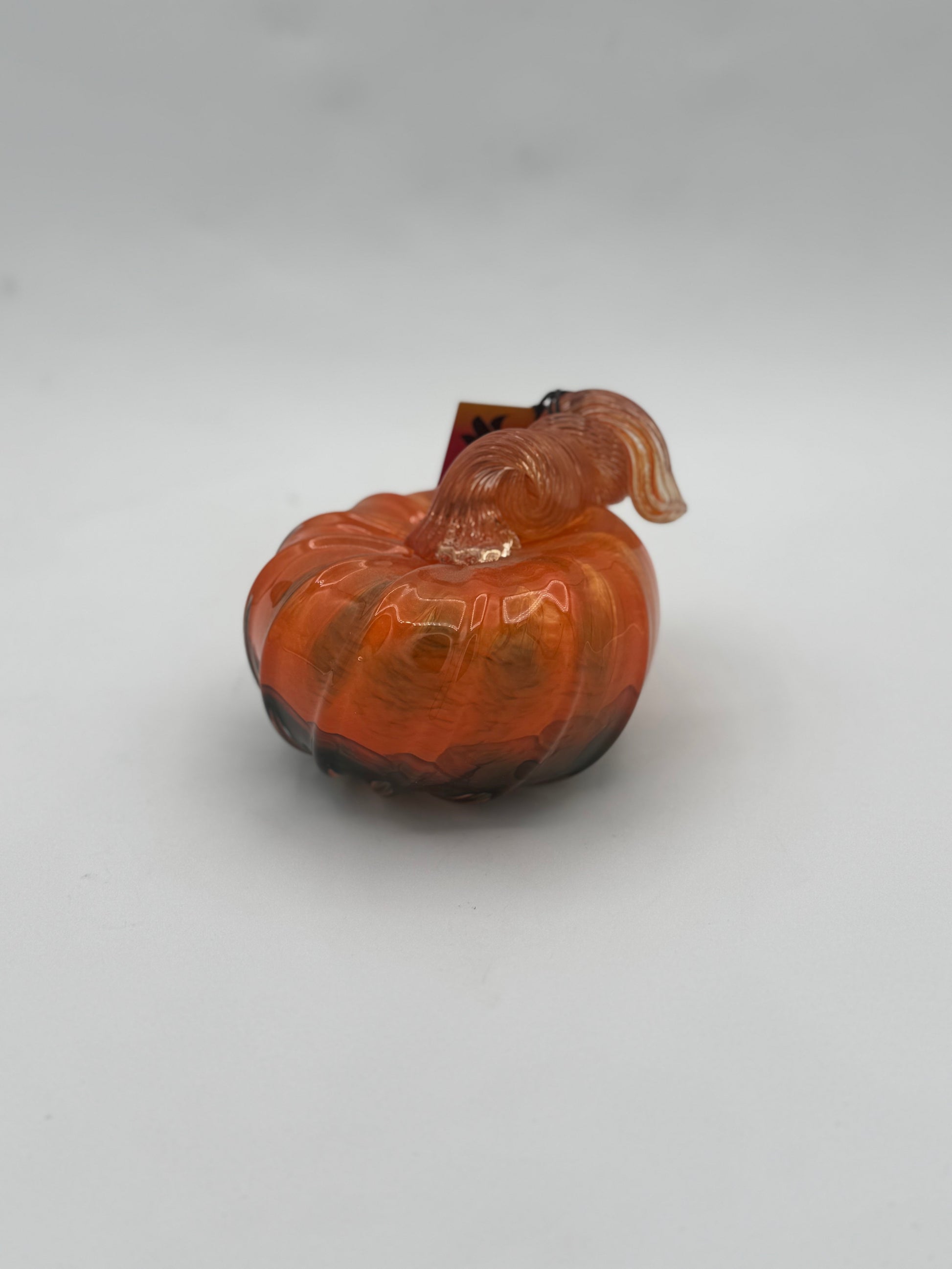 Celebrate autumn with our small handblown glass pumpkins made by our Project FIRE young artists. Each pumpkin is uniquely created and will vary slightly. Measures 4" x 4".